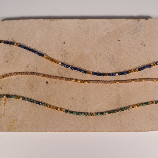 Designed to layer, easy to love. This blush Peach Moonstone necklace features 3mm faceted beads with gold accents sprinkled throughout — subtle on its own, perfect when stacked.